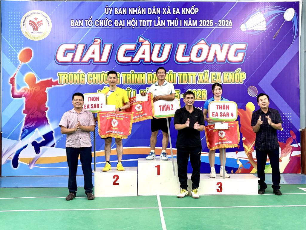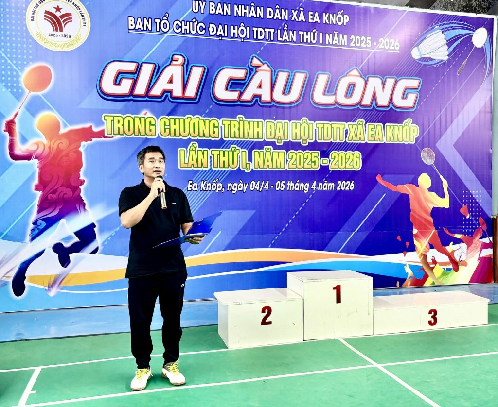 Ngày 5/4, tại Cụm sân thể thao Cầu lông – Pickleball Kore, UBND xã Ea Knốp tổ chức Bế mạc Giải Cầu lông trong khuôn khổ Đại hội Thể dục thể thao (TDTT) xã Ea Knốp lần thứ I, năm 2026. Tham dự buổi lễ, có ông Nguyễn Thanh Hưng – Phó chủ tịch thường trực UBND xã, đại diện lãnh đạo Trung tâm Cung ứng dịch vụ sự nghiệp công và các nhà tài trợ giải.