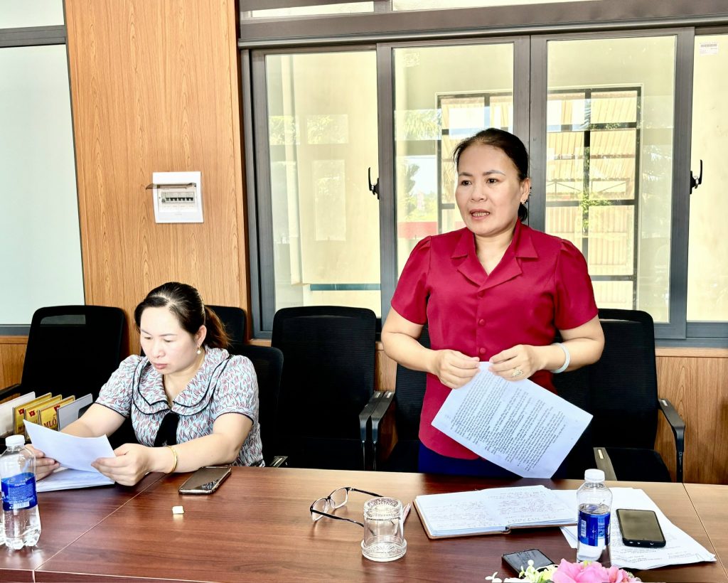 Bà Vũ Thị Thanh Giang – Chủ tịch Ủy ban MTTQ Việt Nam xã phát biểu ý kiến tại hội nghị