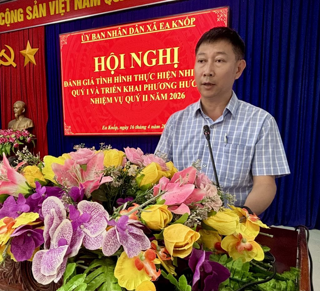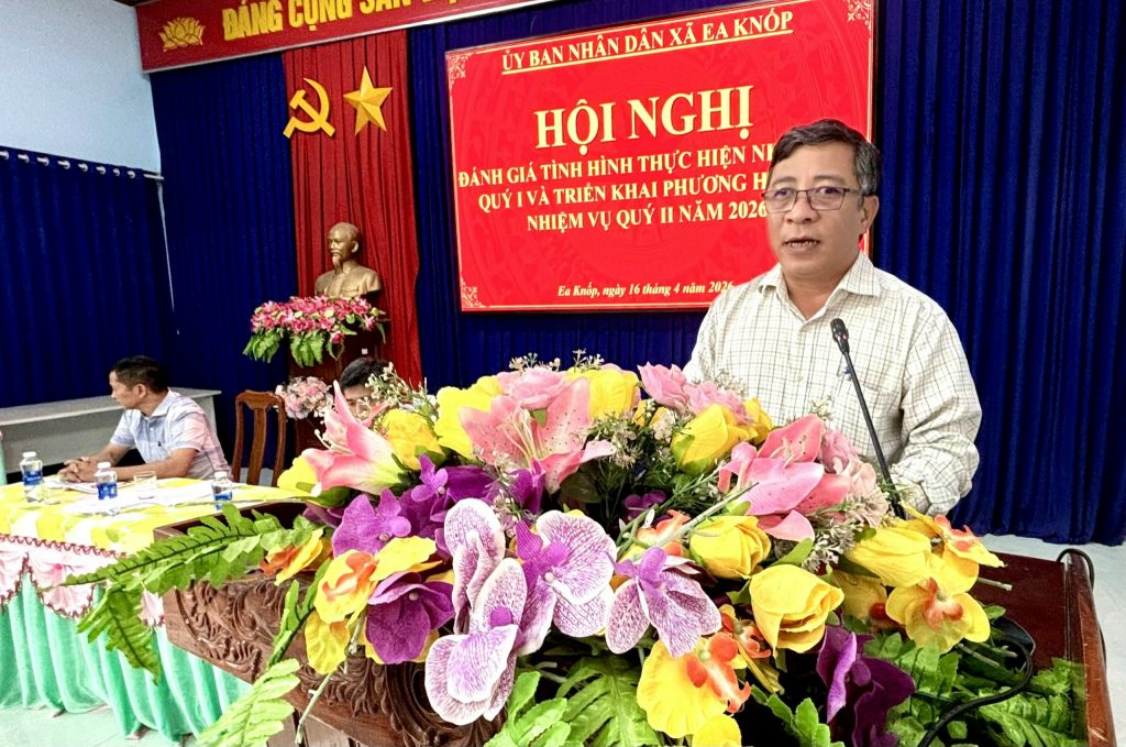Sáng 16/4, UBND xã Ea Knốp đã tổ chức Hội nghị đánh giá tình hình thực hiện nhiệm vụ Quý I và triển khai phương hướng nhiệm vụ Quý II, năm 2026.